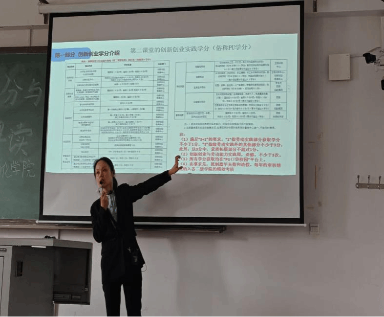 会上,陈晓红老师详细介绍了创新创业学分的重要性及其获取途径。她强调,创新创业学分不仅是对学生创新能力和实践成果的认可,更是学生未来发展的重要支撑。通过参与各类创新创业实践活动、学科竞赛、大学生创新项目和创业实践等,学生们可以获得相应PU学分,并在实践中锻炼自己的能力和素质。同学们认真听取本次讲解,现场与陈晓红老师积极交流互动,有效激发了同学们的比赛热情。