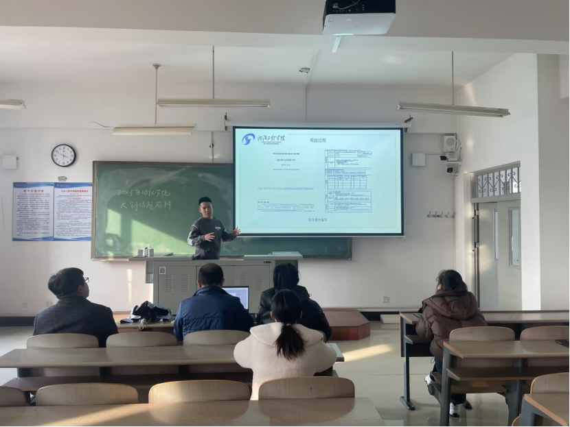 本次答辩共有25组同学参加,答辩同学针对项目的内容向评委老师进行叙述讲解,评委老师们严谨客观地评价了同学们的参赛作品并为作品的研究方向给予明确指引,激励同学们为后续的比赛做充足准备。