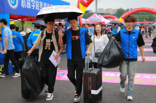 迎新当日,雨丝轻拂,志愿者们手持雨伞,穿梭在人群中,为每一位需要帮助的新生及家长撑起一片晴空。这一幕幕撑伞相送的画面,成为了迎新现场最动人的风景线,传递着学院对新生无微不至的关怀与温暖。