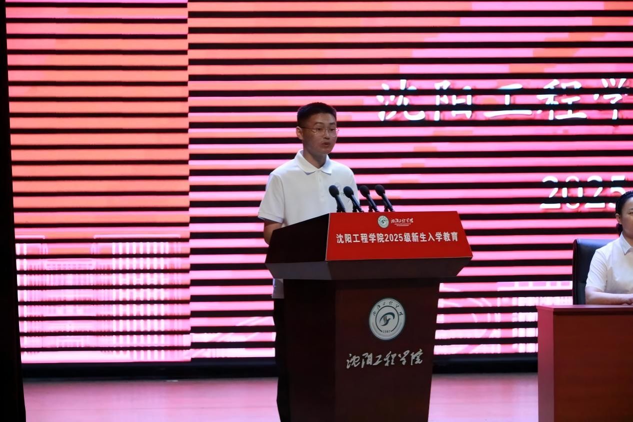大会在庄严的国歌声中正式开始,全场师生肃立齐唱,昂扬旋律激荡每个人的爱国情怀与奋斗初心。在校生代表、自动化222班任俐州同学结合自身成长经历,分享从迷茫到从容的心路历程。他鼓励新生勇敢尝试、不怕试错,在多元平台上发现热爱、坚持所选,真正把大学活成属于自己的广阔天地。