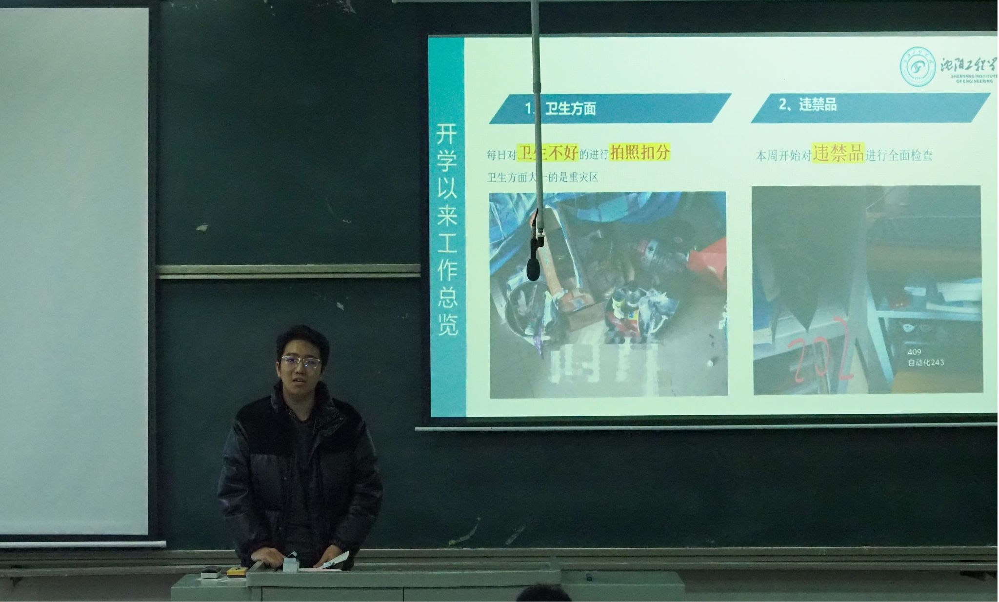 随后,学院学生会文体部、学习部、组织部、男生部负责人依次汇报近期工作开展情况,围绕校运会筹备、早操管理、主题班团会、团员发展、学风建设、晚自习检查、寝室卫生、晚归熄灯及违禁品排查等重点工作明确标准与时间节点,强化责任落实。