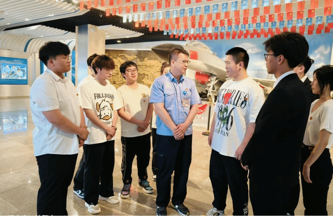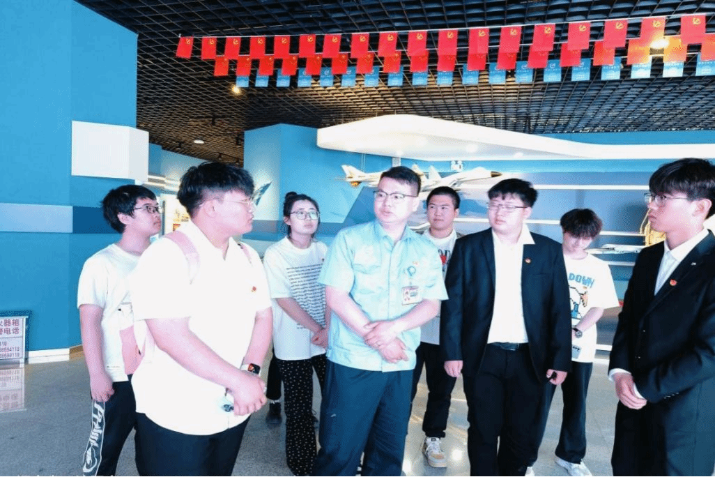 讲解员带领师生沉浸式感受中国歼击机发展历程、了解航空专业知识、学习“罗阳精神”,深刻把握爱国主义精神和劳模精神的内涵。
