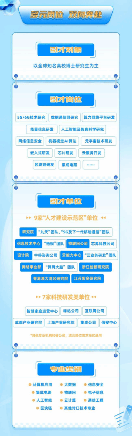 中国移动通信集团有限公司(以下简称“中国移动”),是按照国家电信体制改革的总体部署,于2000年组建成立的中央企业。截至目前中国移动拥有基站692万个,客户规模超10亿户,收入规模超1万亿,员工总数48万,所属单位59家。中国移动连续20年在中央企业负责人经营业绩考核达A级,2023年度位列第一;连续5年在国资委党建考核达A级;2024年《财富》世界500强排名55位;国资委首批科技创新优秀企业第一名;入选最受大学生关注雇主TOP10。